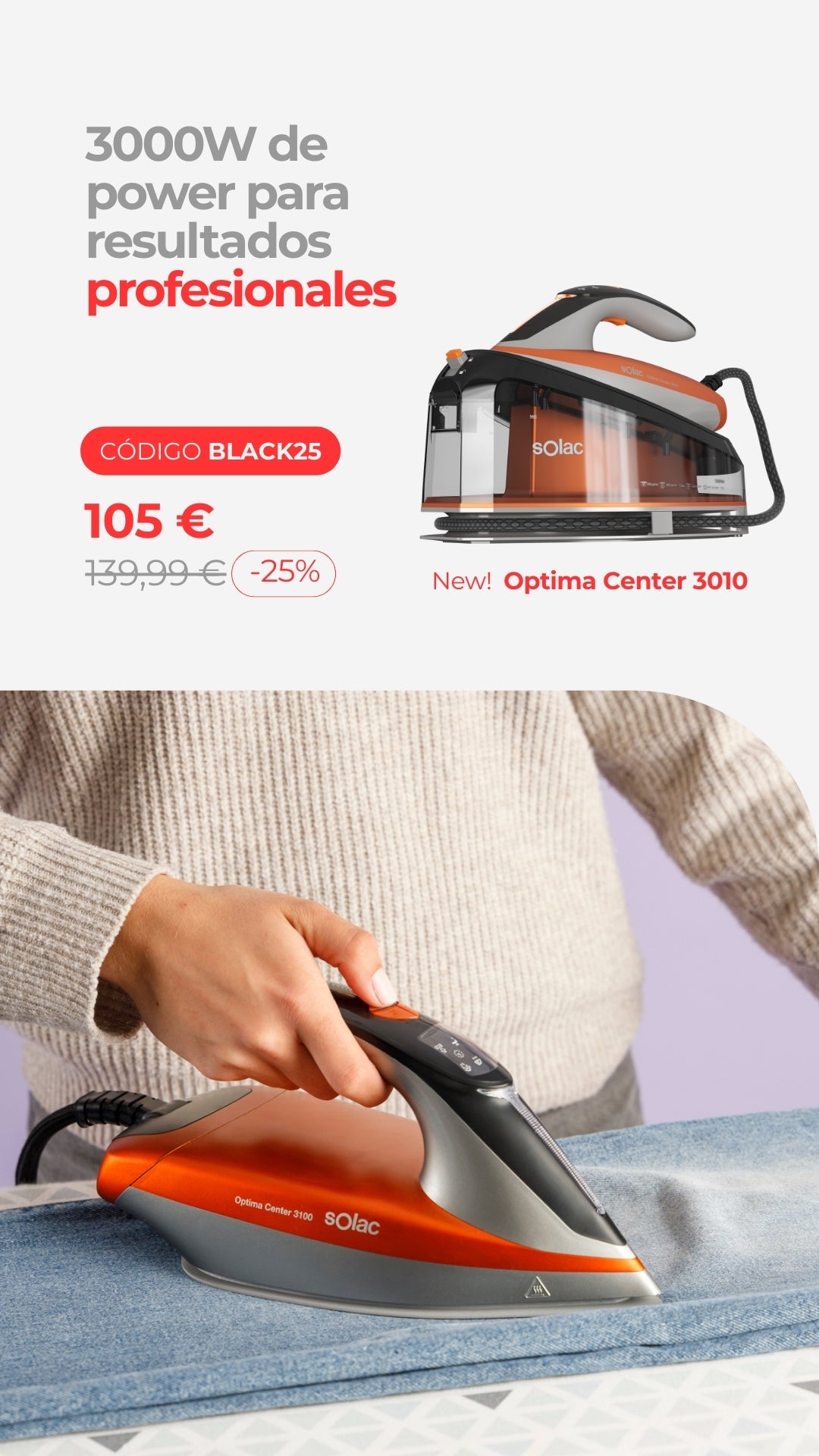 En Solac llevamos más de 100 años fabricando pequeños electrodomésticos, somos especialistas en productos de vapor para el cuidado de la ropa y del hogar: centros de planchado compactos, planchas de vapor y planchas verticales.