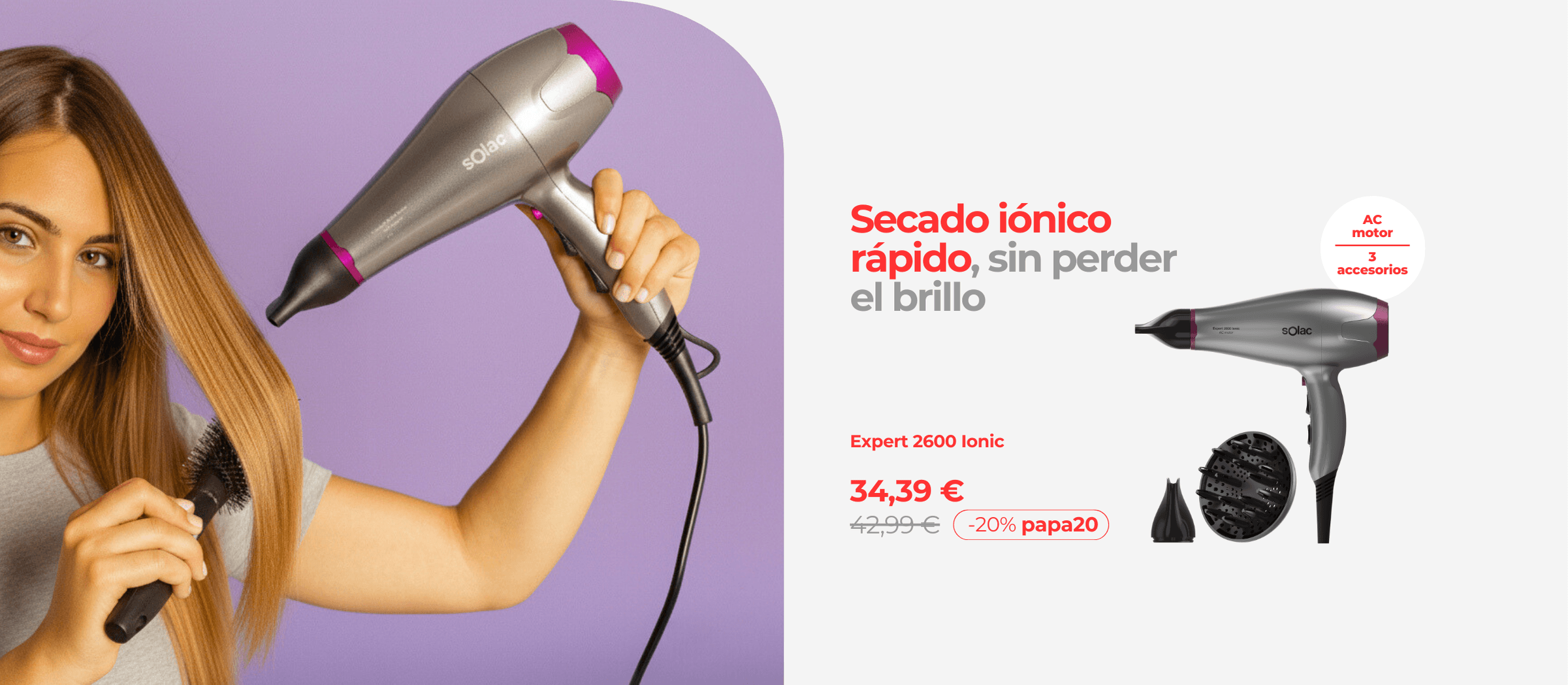 Secador de peloPrecio habitual 39,99 €39,99 € Precio habitualPrecio unitario / por49,99 €- 20%Precio de ofertaOferta