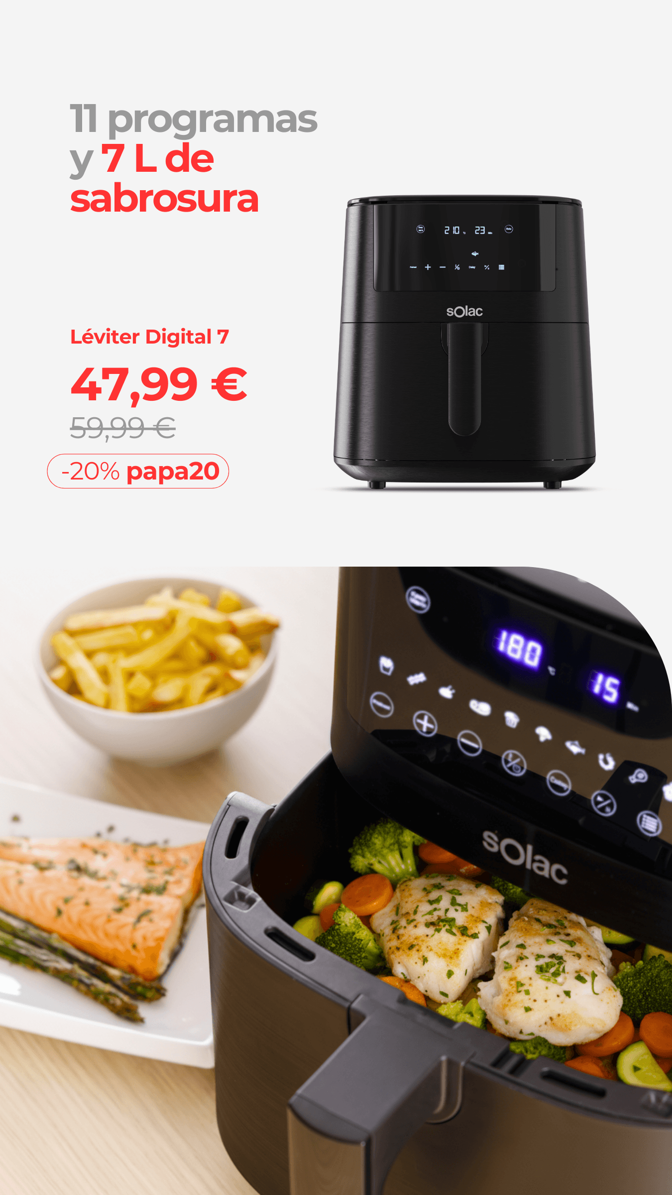 Freidora sin aceitePrecio habitual 79,99 €79,99 € Precio habitualPrecio unitario / por109,99 €- 27%Precio de ofertaOferta -