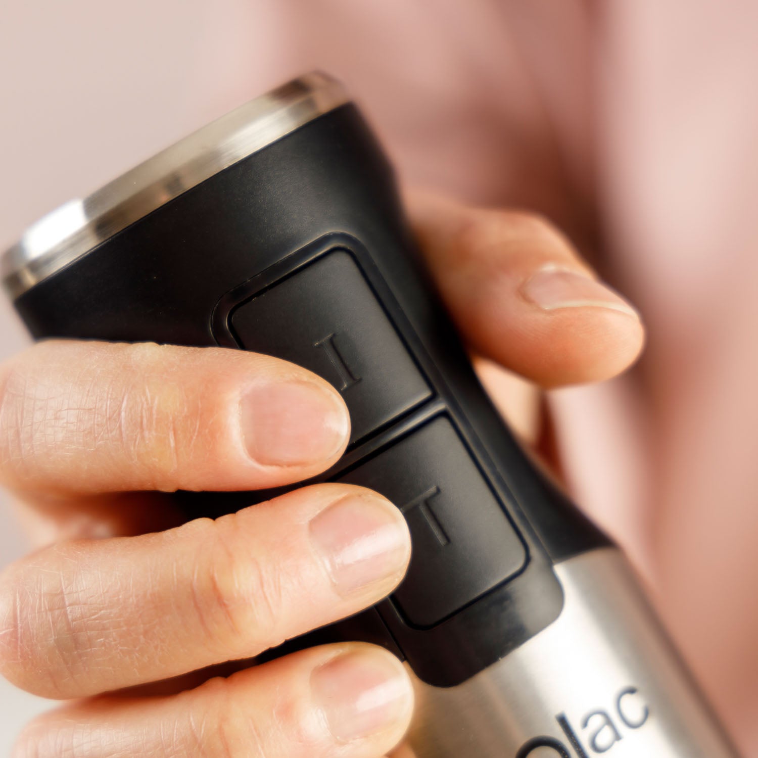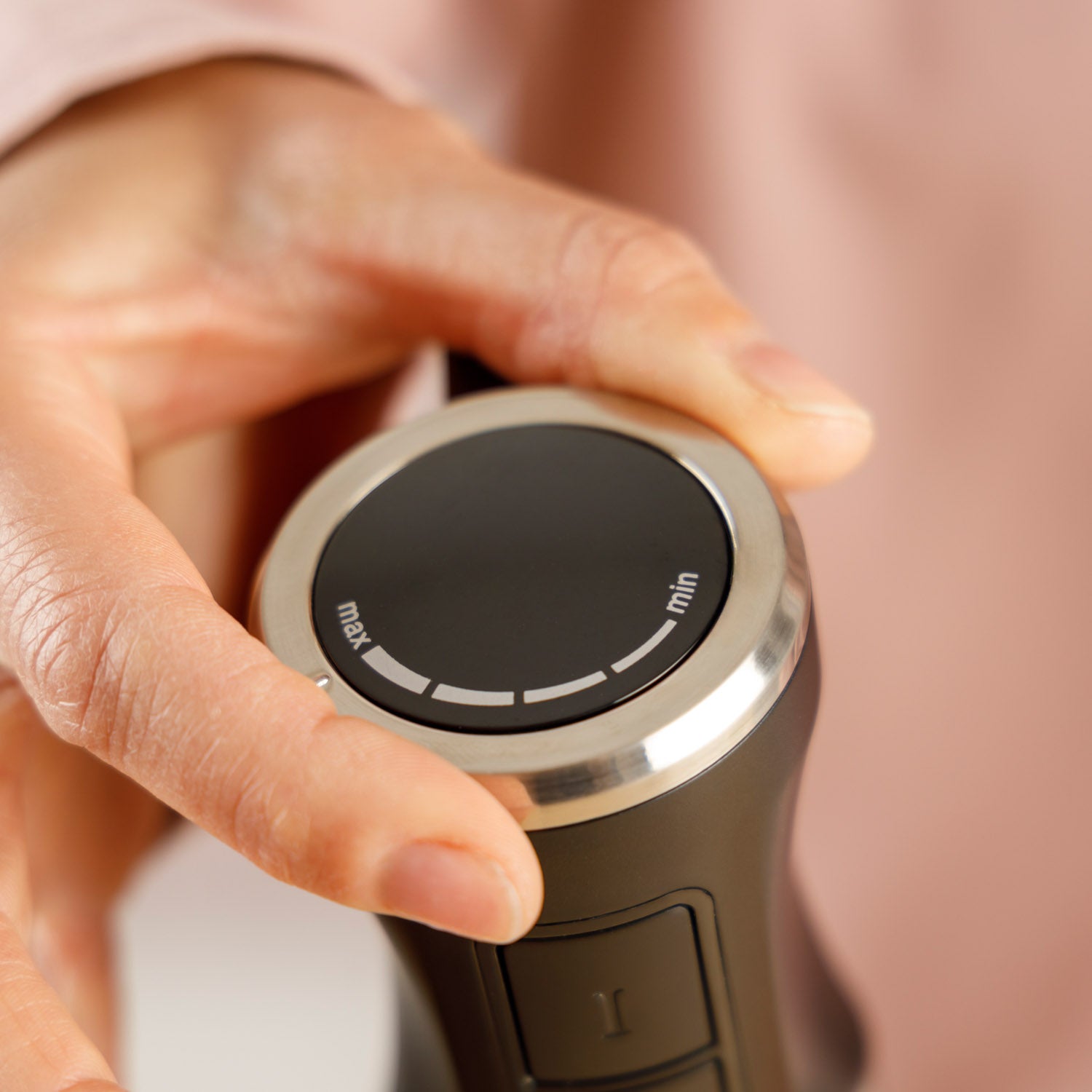 Equipada con un motor de 1500 W, esta batidora de mano ofrece un rendimiento de alto nivel para cualquier preparación. Gracias a su regulador de velocidades progresivo y la práctica función Turbo, podrás adaptar la potencia a cada receta con total precisión.