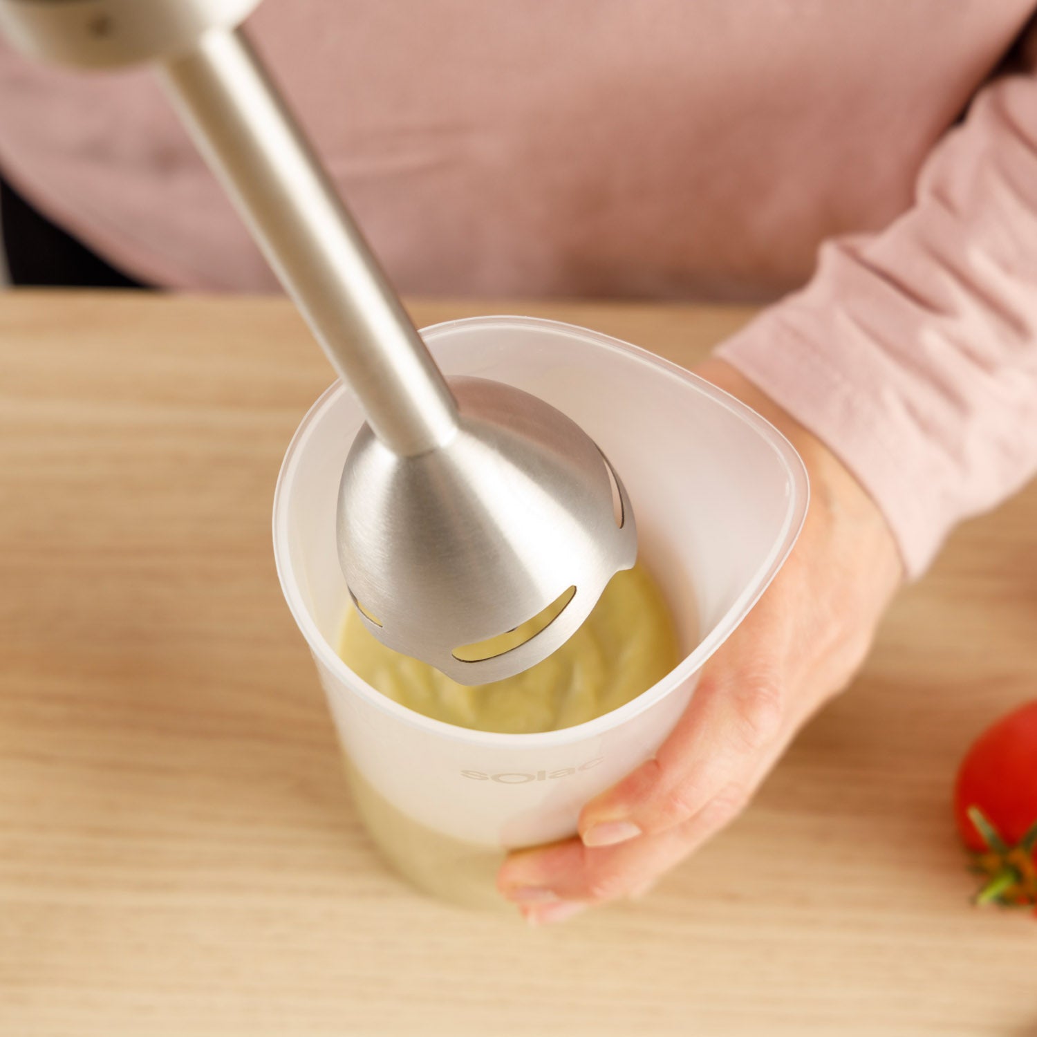 Incluye un vaso medidor de 700 ml, perfecto para preparar y medir tus mezclas al momento. Tanto la varilla como el vaso son aptos para lavavajillas, para que disfrutes más y limpies menos.