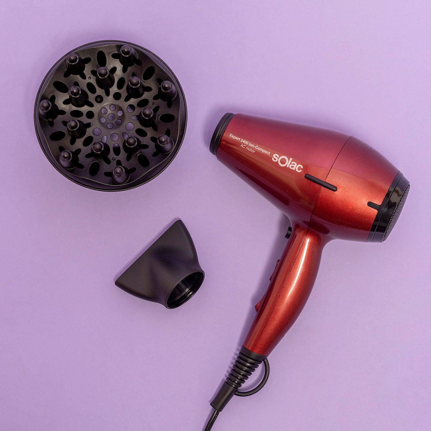 El secador Expert 2400 Ion-Compact de Solac cuenta con un potente motor AC profesional que garantiza un secado eficaz y duradero en menos tiempo.