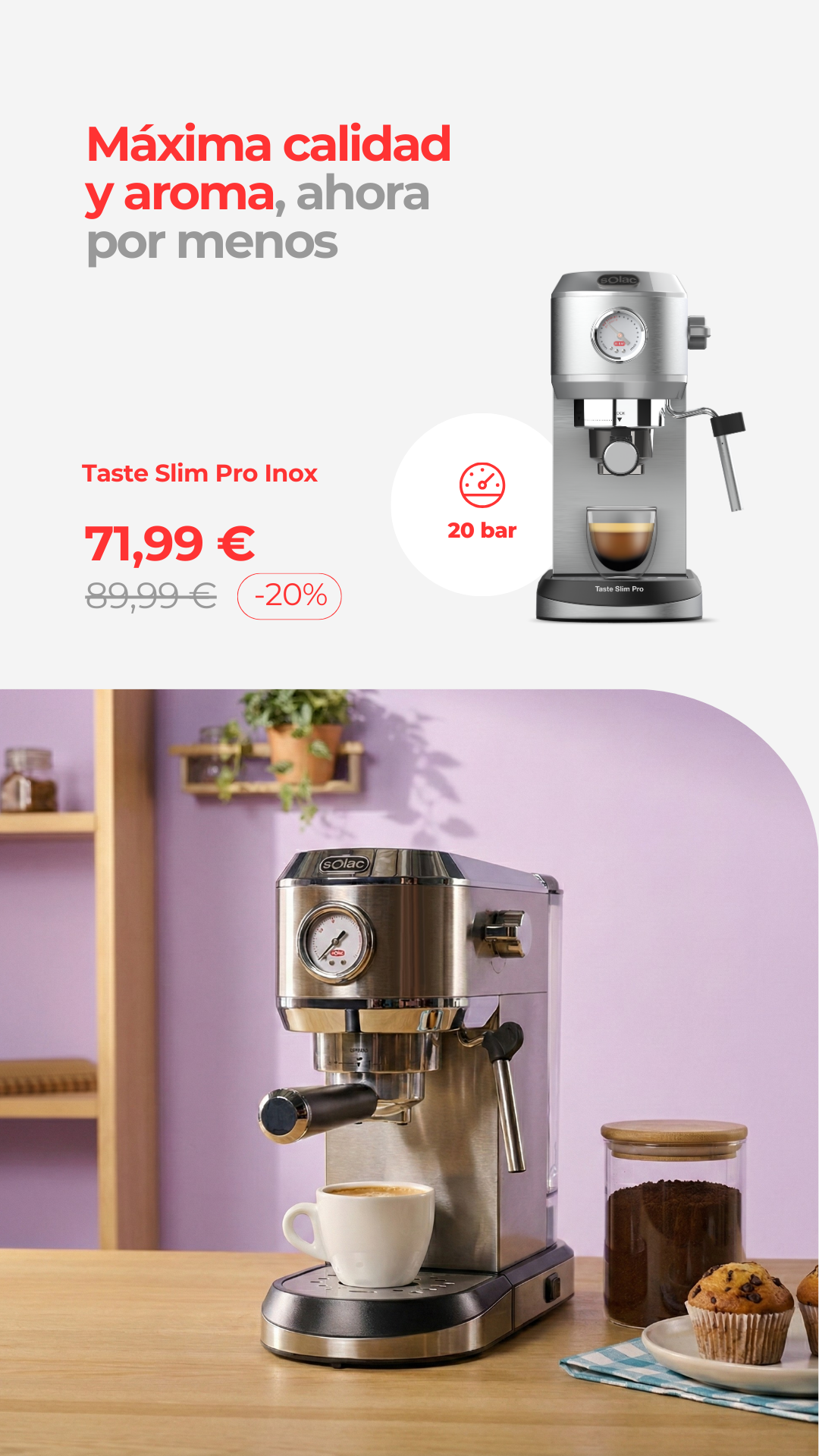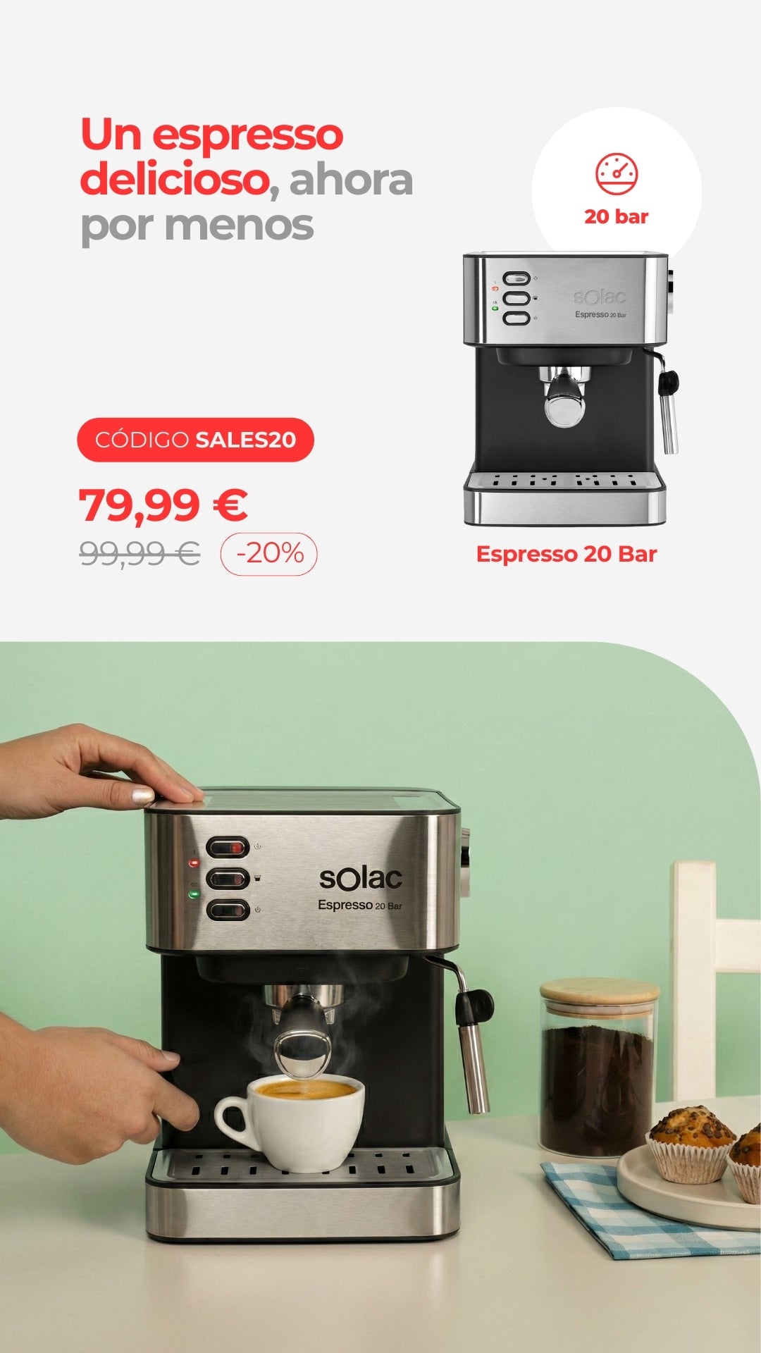 Máquina de café expressoPreço normal 79,99 €Preço normalPreço unitário / por94,99 €- 15%Preço de saldo 79,99 €Em promoção -
