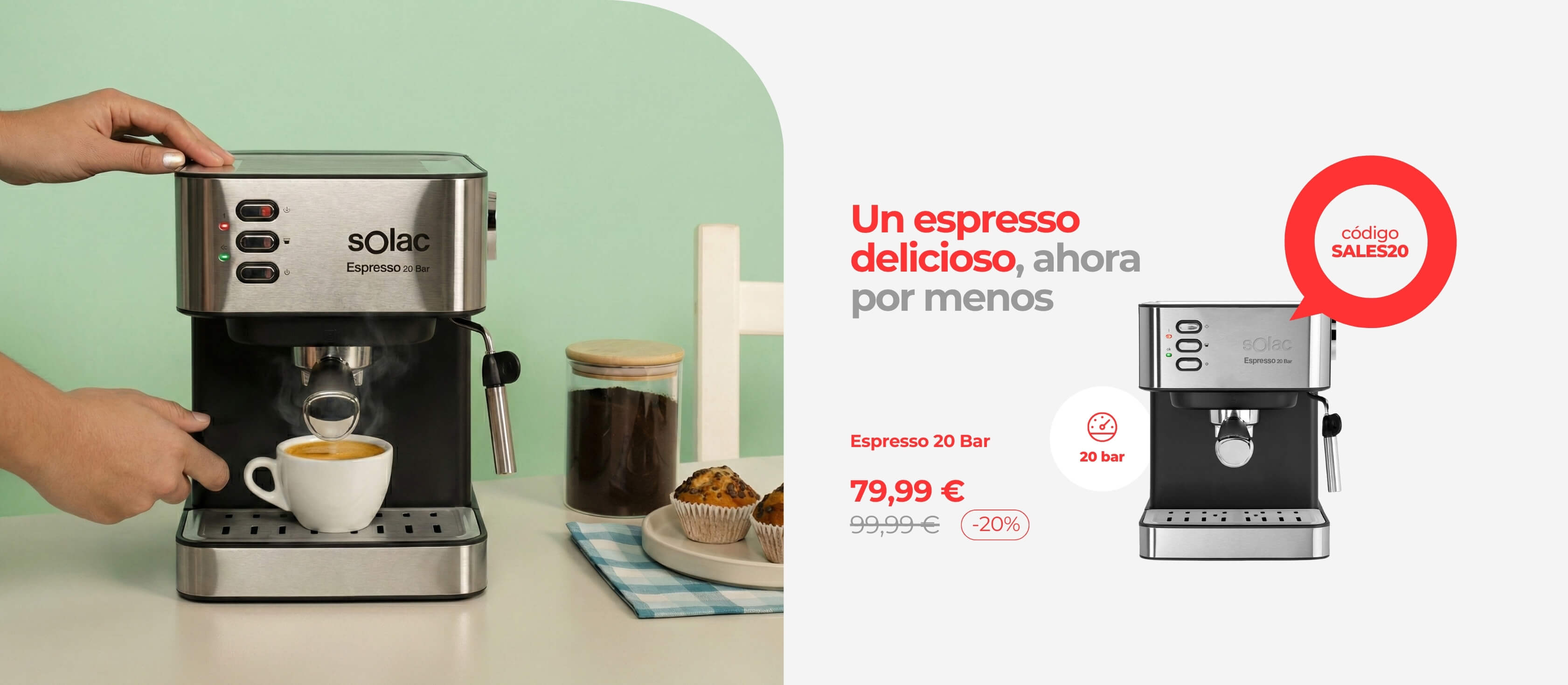 Cafetera espressoPreço normal 89,99 €Preço normalPreço unitário / por99,99 €- 10%Preço de saldo 89,99 €Em promoção -