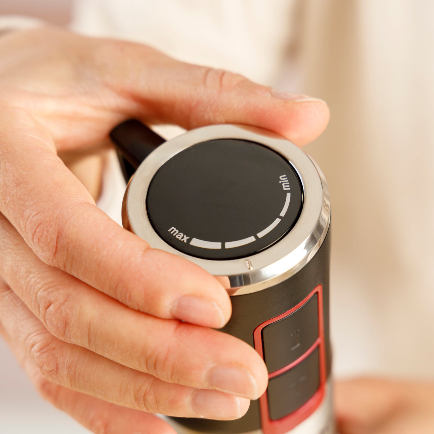 Potencia, resistencia y comodidad se unen en esta batidora de mano de 1500 W, diseñada para ofrecer un rendimiento excepcional en cualquier preparación. Su regulador de velocidades progresivo y la función Turbo permiten ajustar la potencia según las necesidades de cada receta, garantizando resultados perfectos en todo momento.