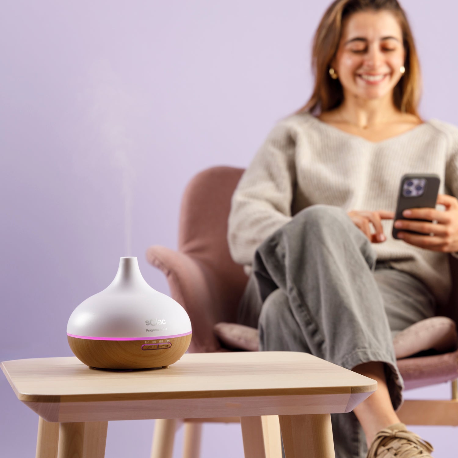 Crea un ambiente relajante y saludable con el humidificador Fragance Quiet. Con capacidad de 300 ml, es ideal para aromaterapia y apto para habitaciones de hasta 15 m².