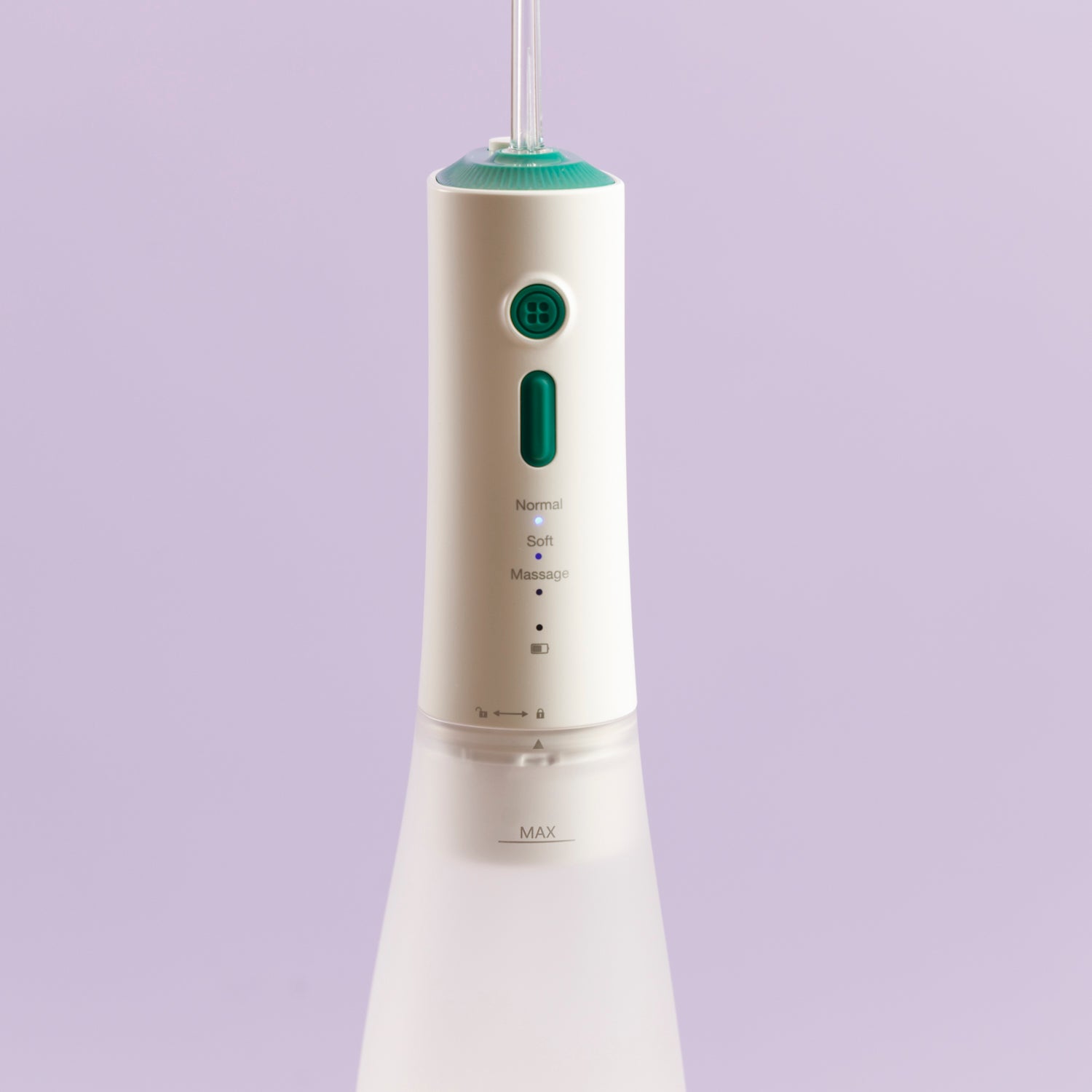 El irrigador dental Aqua Pulse de Solac elimina el sarro y las bacterias con un potente chorro de agua a 120 PSI y tecnología Fresh Flow, que combina agua y oxígeno para una higiene bucal completa.