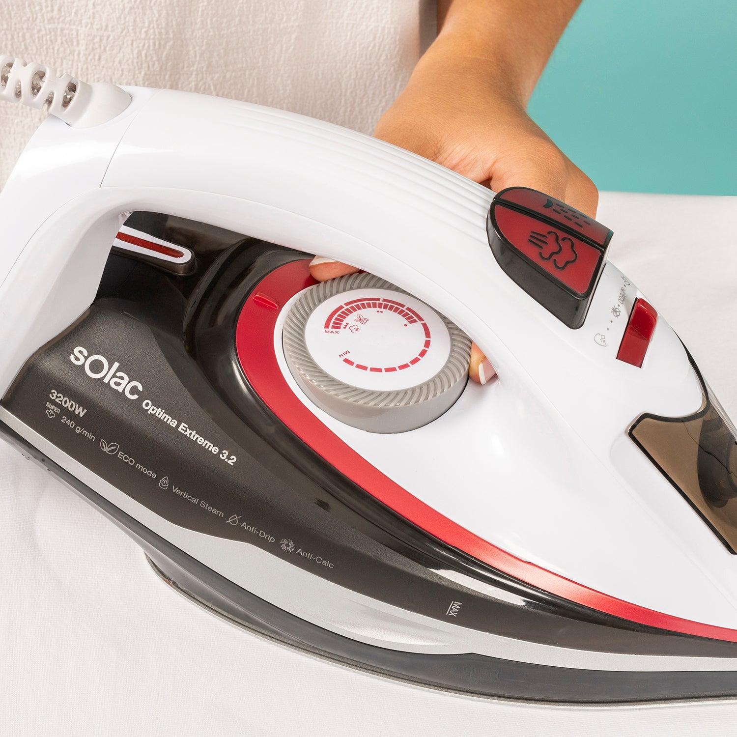 Con 3200 W de potencia, la plancha de vapor Optima Extreme 3.2 elimina arrugas difíciles con rapidez. Su golpe de vapor de 240 g/min y vapor continuo de 45 g/min permiten un planchado eficaz, incluso vertical. Está lista en solo 30 segundos y ofrece regulador de vapor y temperatura, función spray y planchado en seco.
