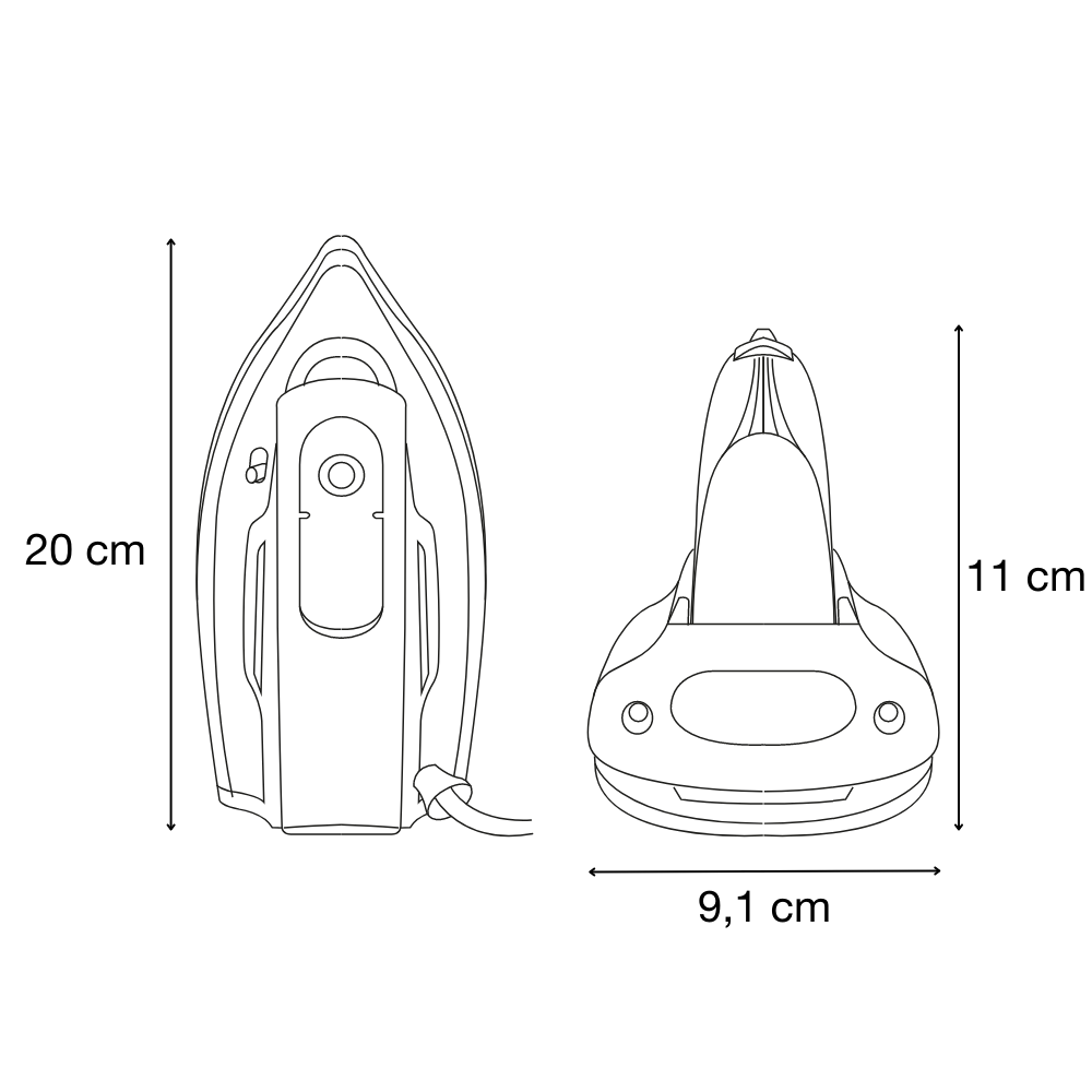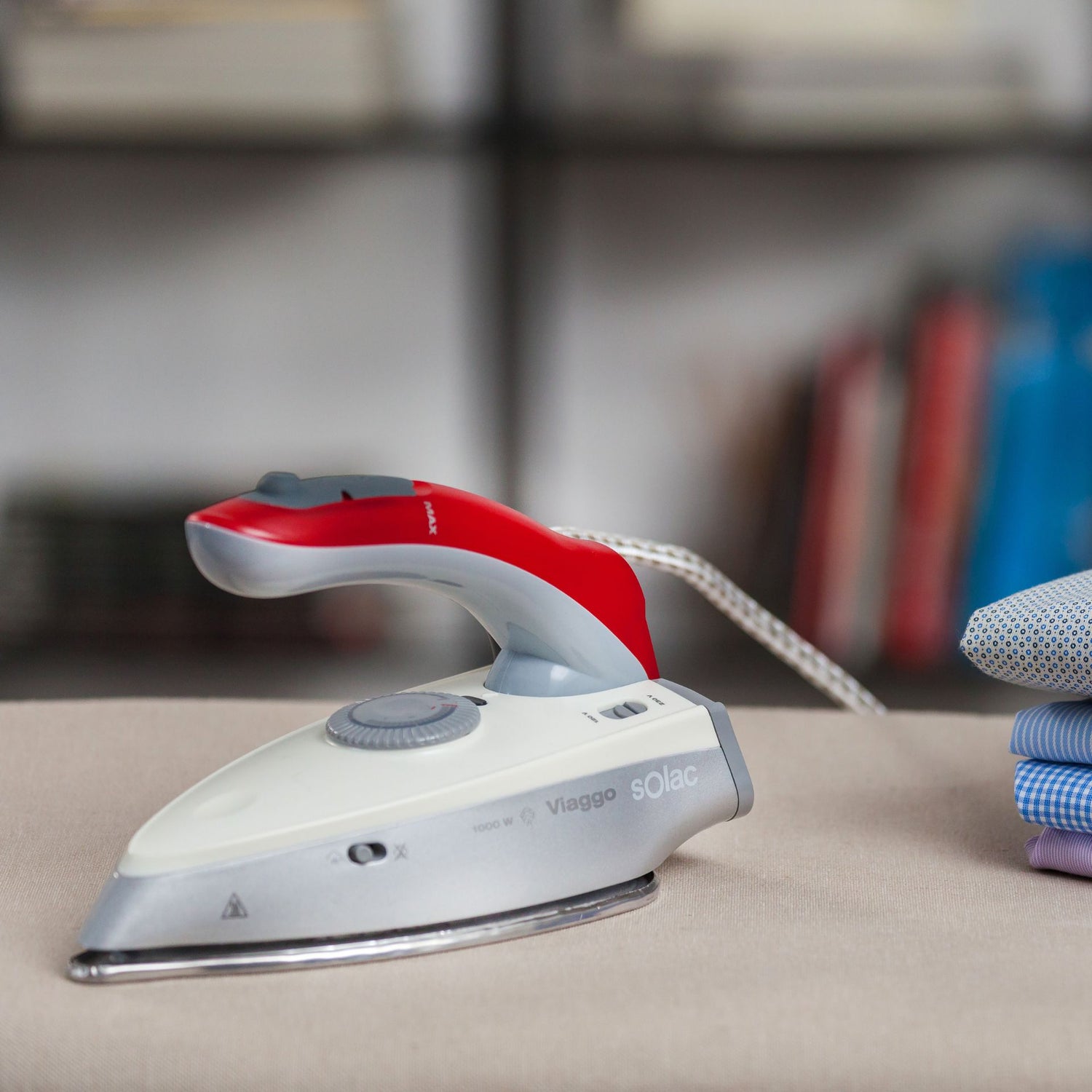 Potência máxima de 1100W para não perder tempo durante a sua viagem. Passe suas roupas de forma prática e rápida com o ferro de passar roupa Solac Viaggio Pro.