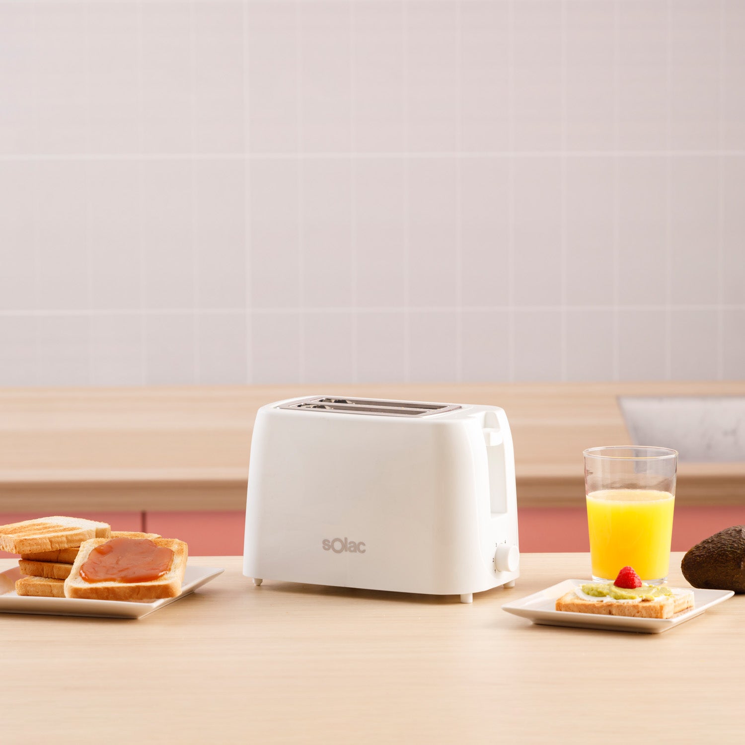 Desfrute de algumas torradas de pão fatiado com Buon Giorno Mini, a torradeira de 750 W com duas ranhuras para fatias quadradas de pão, tipo pão fatiado. Inclui um seletor rotativo onde você pode selecionar entre seus 6 níveis de tostagem.