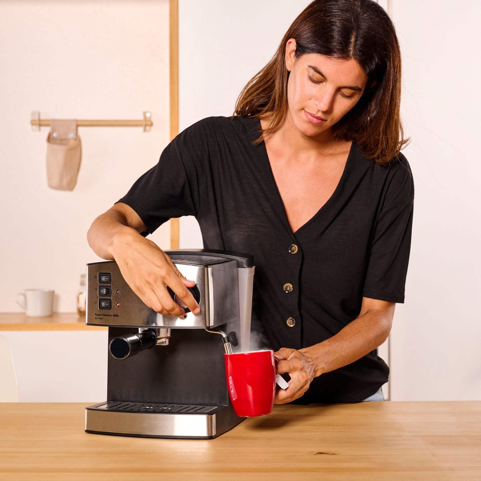 Taste Classic M80 Inox permite preparar uno o dos cafés a la vez gracias a sus dos filtros e incluye función vaporizador.